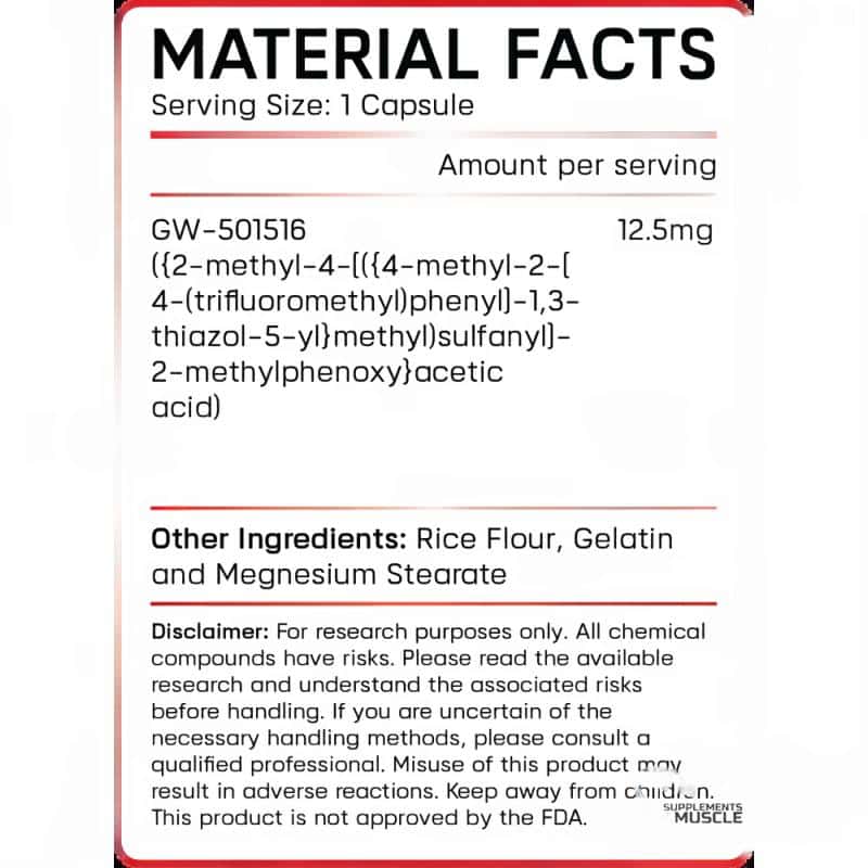 – Ingrediente activo: GW501516 (Cardarine/Endurobol) – 12,5 mg por cápsula