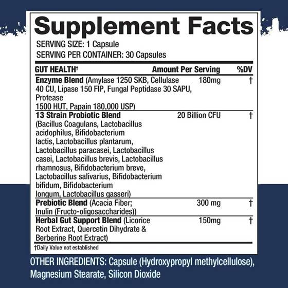 Gaspari Proven GUT Health 30 caps is a dedicated dietary supplement designed to support optimal intestinal health. This product emphasizes the importance of gut health as a cornerstone of overall well-being and wellness. The digestive system plays a crucial role in nutrient absorption, digestion, and immune system function. This supplement harnesses the power of various ingredients, including enzymes, probiotics, prebiotics, and botanical extracts, to promote a healthier gut environment.