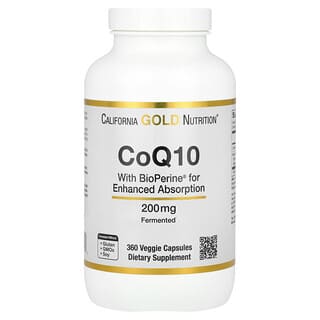 California Gold Voeding CoQ10 features 200 mg, USP verified fermented CoQ10, combined BioPerine® Black Pepper extract to enhance absorption and bioavailability.*