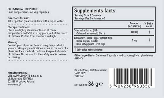 UNS Schisandra + Bioperine aims to deliver a range of health benefits, including but not limited to: