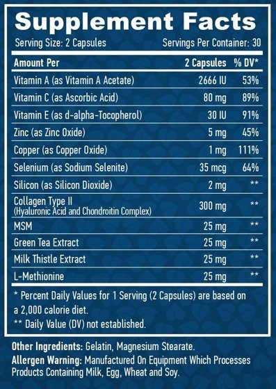 - MSM (25 mg): Delivers anti-inflammatory benefits and enhances hair and nail condition.